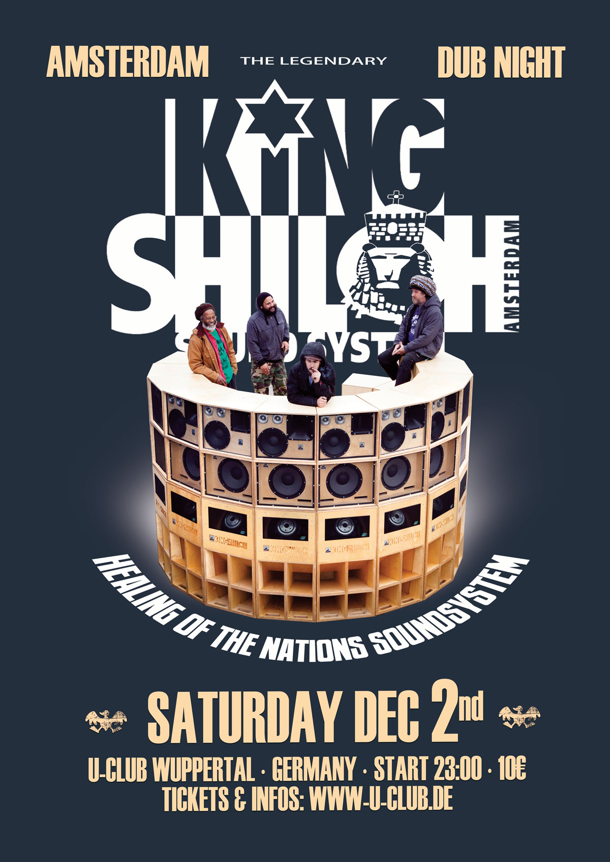 Wir präsentieren euch "One of the heaviest Soundsystems in Europe“ und damit niemanden geringeres als King Shiloh aus Amsterdam. Das Highlight dabei ist, dass King Shiloh immer ihr eigenes Soundsystem mitbringen, eine massive Wand aus selbstgebauten Speakers, Amps und einem Bass, der wirklich seines gleichen sucht. Musikalisch wird euch der beste Roots Reggae, Dub und Foundation Musik geboten, aufgelegt im traditionellen Style auf Plattenspielern, mit Effekten vermischt und am Mic angekündigt. Auch lässt es King Shiloh sich oftmals nicht nehmen, nahmhafte Live Artists als Surprise Acts dabei zu haben, die während der Session ihre Tunes zum besten geben. Wir dürfen gespannt sein und freuen uns auf einen spektakulären Abend mit King Shiloh Sound aus Amsterdam.